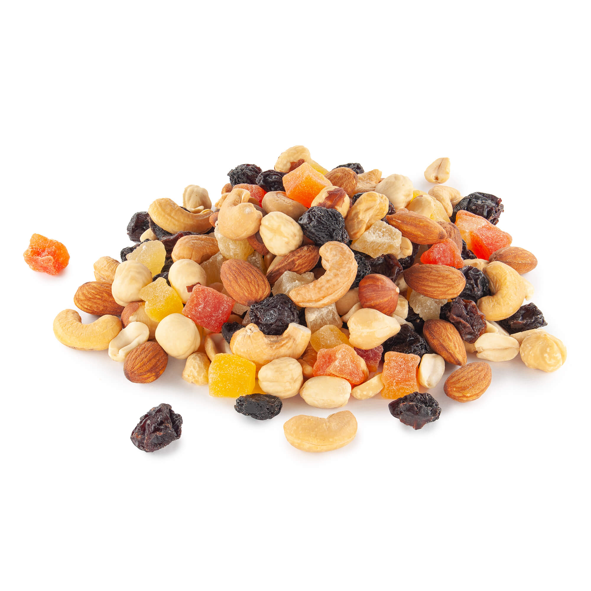 Ассорти из орехов (арахис, кешью, миндаль, фундук очищенные и обжаренные) с изюмом (виноград сушеный, подсолнечное масло) и ассорти цукатов: папайя (папайя, сахар, консервант диоксид серы), ананас (ананас, сарах, лимонная кислота, консервант диоксид серы), манго (манго, сахар, лимонная кислота, консервант диоксид серы). Не содержит дополнительных добавок и примесей. Готова к употреблению использованию. Ореховые смеси применяются в кондитерском производстве или в качестве готового снека. Страна производитель — Россия. Упакована в полиэтиленовый пакет внутри гофрокороба. Срок хранения 180 дней при температуре 5 ℃ - 21 ℃.